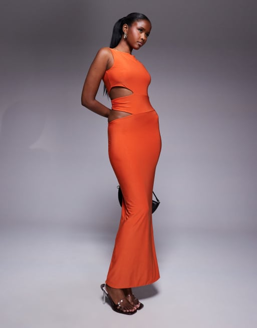 Missy Empire - Robe longue et moulante en tissu double épaisseur avec découpes sur le côté - Orange