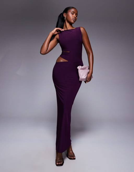 Missy Empire - Robe longue et moulante en tissu double épaisseur avec découpes sur le côté - Violet