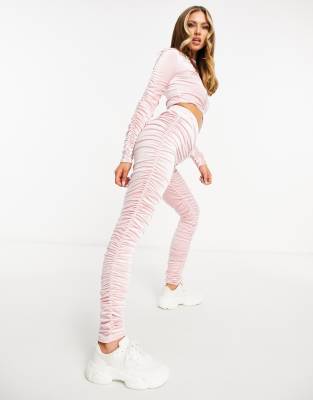 Moda Minx - Survêtement en velours avec top et jogger froncés - Rose