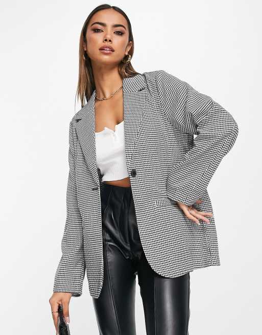 Monki - Blazer oversize motif pied-de-poule - Noir et blanc