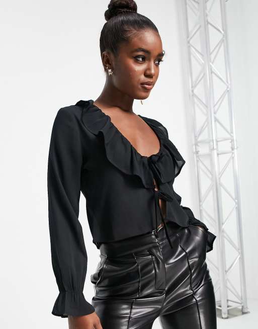 Monki - Blouse volantée en mousseline - Noir