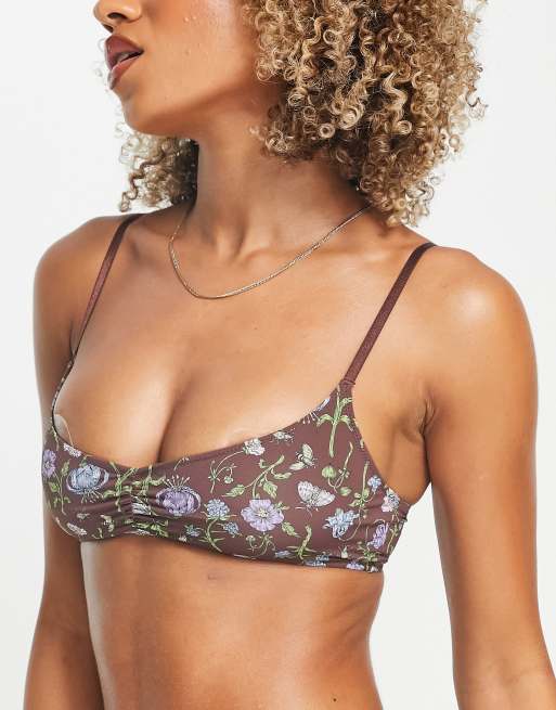 Monki - Brassière en coton à imprimé fleurs - Marron