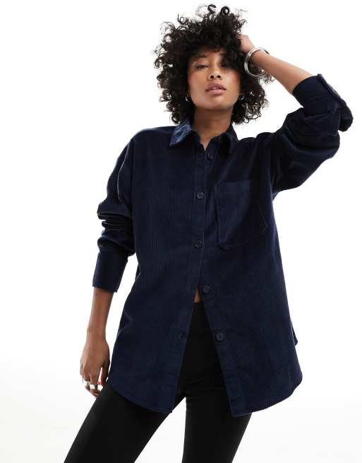 Monki - Chemise à manches longues en velours côtelé - Bleu marine