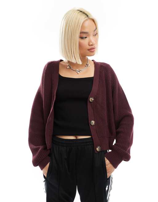 Monki - Gilet en maille côtelée torsadée - Bordeaux
