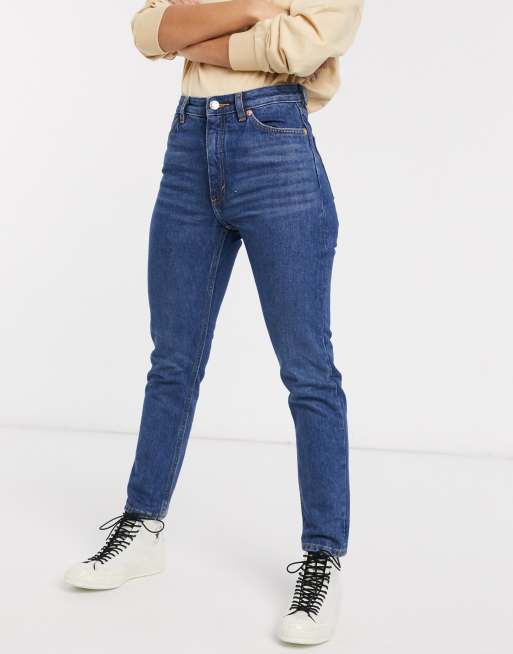 Monki - Kimomo - Jean mom taille haute avec coton - Bleu cendré - MBLUE