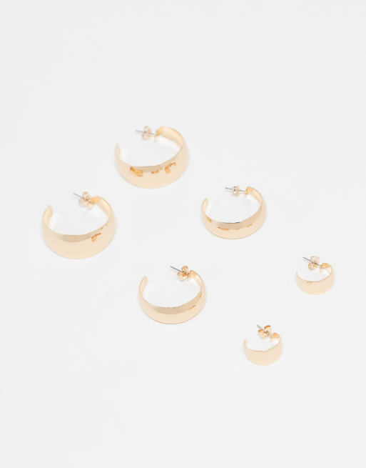 Monki - Lot de 3 paires de créoles larges et oversize - Doré