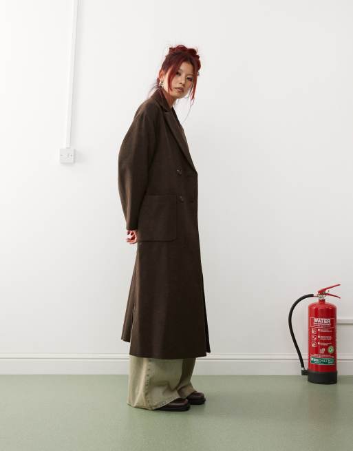 Monki - Manteau ceinturé à double boutonnage - Marron chiné