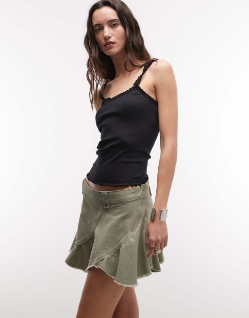 Monki - Mini-jupe taille basse avec détails circulaires - Kaki