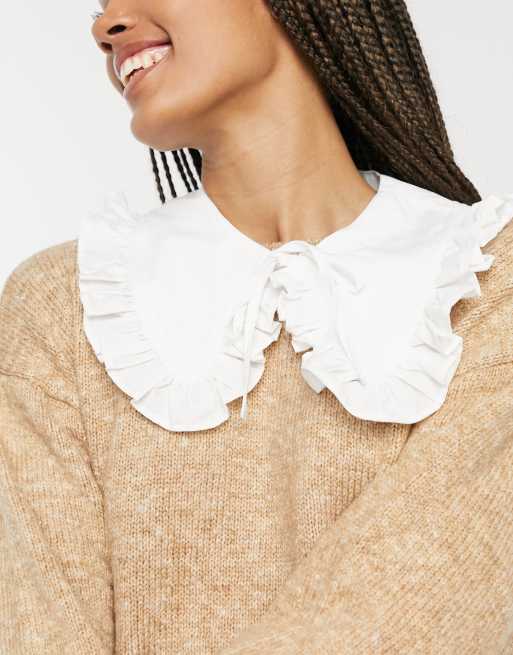 Monki - Miso - Col noué en coton à volants - Blanc