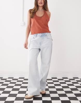 Monki - Missy - Jean ample à taille basse - Bleu clair délavé