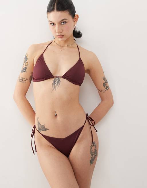 Monki - Mix & Match - Bas de bikini noué sur les côtés - Bordeaux