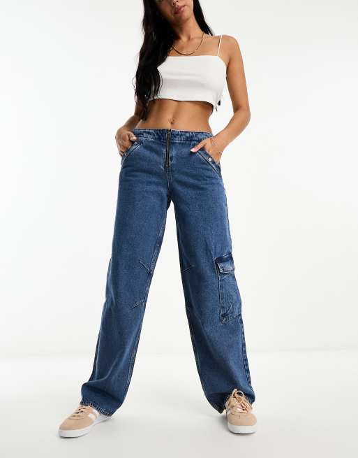 Monki - NN Camilla - Jean cargo fonctionnel - Bleu moyen