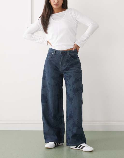 Monki - Peggy - Jean baggy effet tie-dye - Bleu foncé délavé