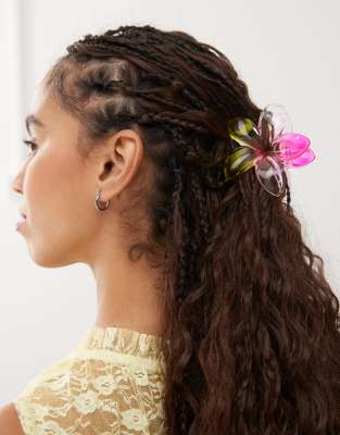 Monki - Pince à cheveux fleur - Rose et vert