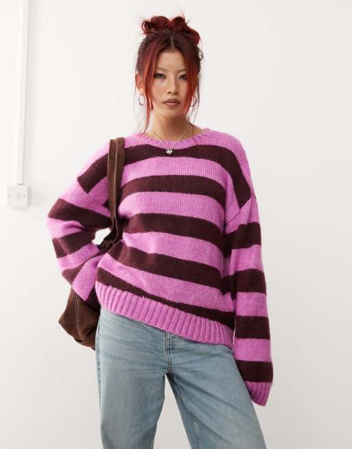 Monki - Pull ras de cou en maille rayée - Rose et bordeaux