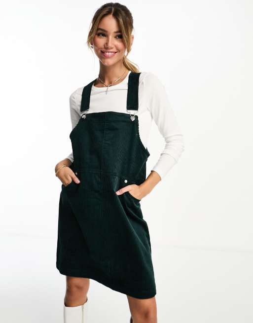 Monki - Robe chasuble courte en velours côtelé - Vert forêt
