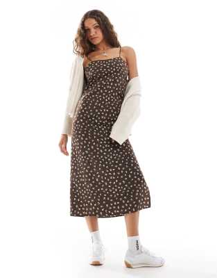 Monki - Robe longue à bretelles avec imprimé à petites fleurs - Marron