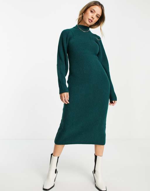 Monki - Robe mi-longue en maille chinée - Vert foncé - DGREEN