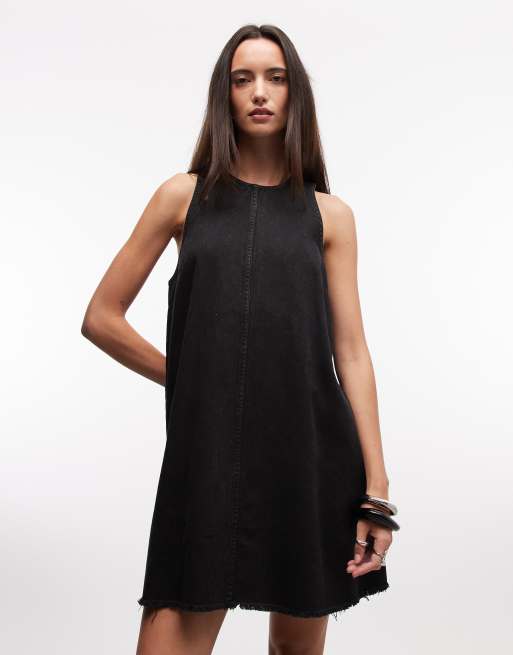 Monki - Robe trapèze courte et sans manches à bords effilochés - Noir