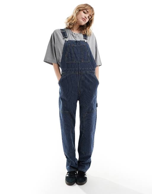 Monki - Salopette en jean style workwear à rayures - Bleu délavé