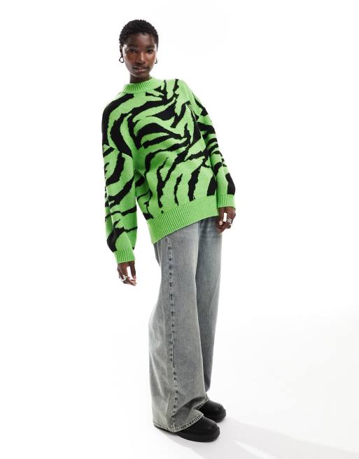 Monki - Sweat en maille jacquard à motif grands tourbillons - Vert