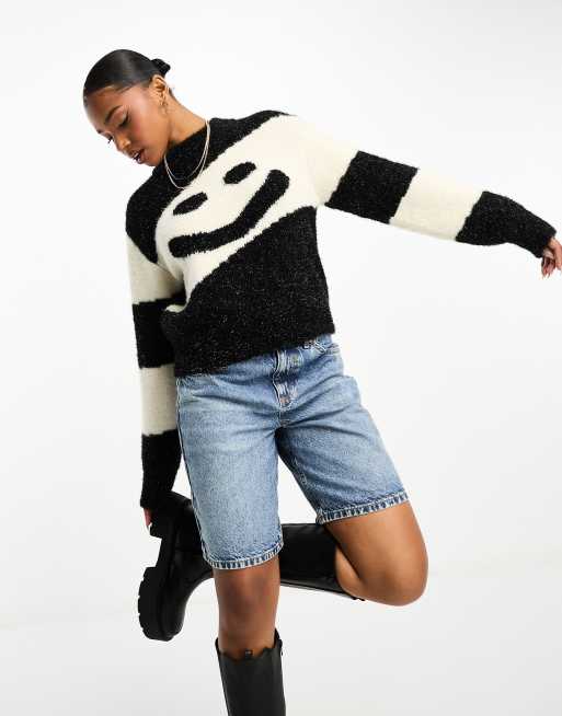 Monki - Sweat en maille rayée avec manches oversize - Noir et blanc pailleté