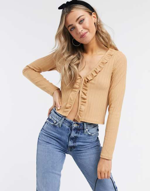 Monki - Tonis - Gilet à volant sur l'avant - Beige