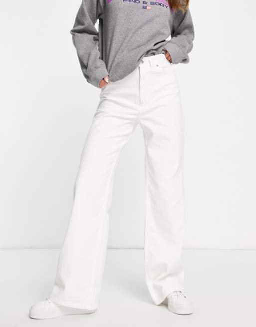 Monki - Yokowide - Pantalon droit en velours côtelé - Blanc