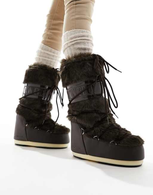 Moon Boot - Bottines de neige en fausse fourrure - Marron