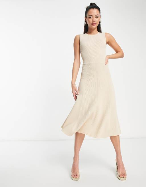 Morgan - Robe patineuse mi-longue sans manches en manche côtelée - Crème