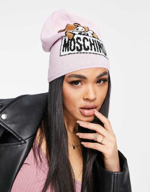 Moschino - Bonnet à grand logo ours en peluche - Rose
