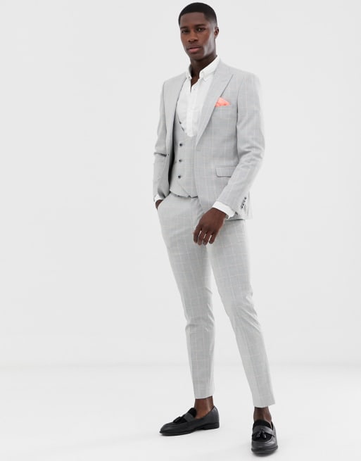 Moss London - Costume ajusté stretch à grands carreaux - Gris