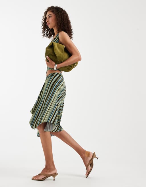 Motel - Esmeray - Jupe d'ensemble mi-longue à rayures variées - Vert