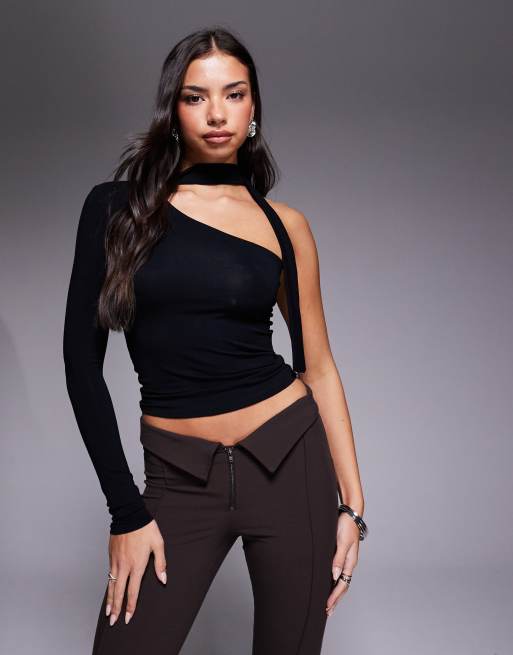 Motel - Jayahe - Top asymétrique avec détail foulard - Noir