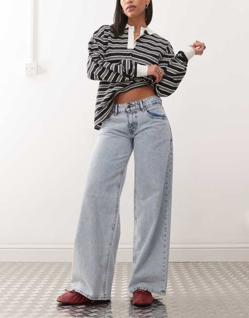 Motel - Jean ultra large à taille basse - Bleu clair délavé