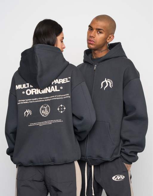 Multiply Apparel - Origin - Sweat à capuche oversize à fermeture éclair - Noir soda