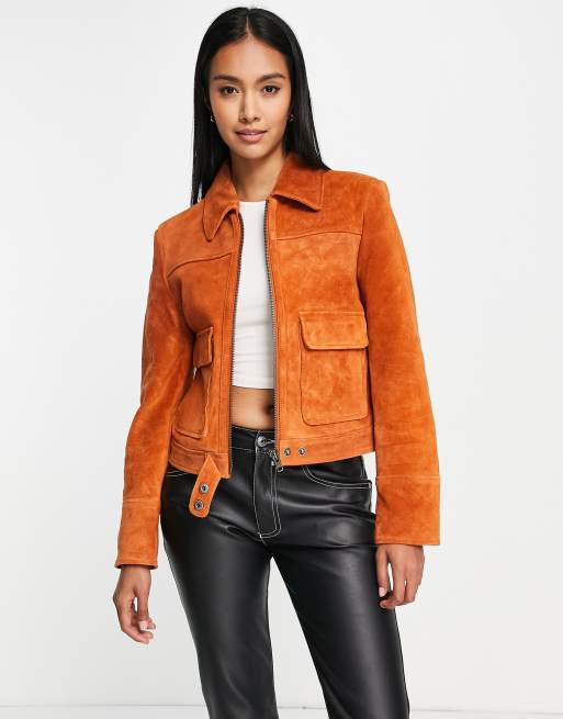 Muubaa - Veste en daim style années 70 à fermeture éclair - Mangue