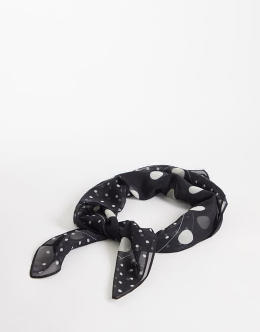 My Accessories - Bandana en mousseline à pois - Noir et crème