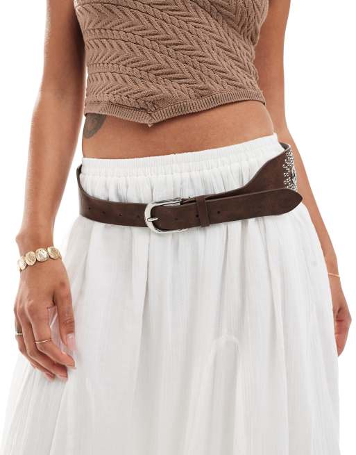 My Accessories - Ceinture large à clous - Argenté et marron