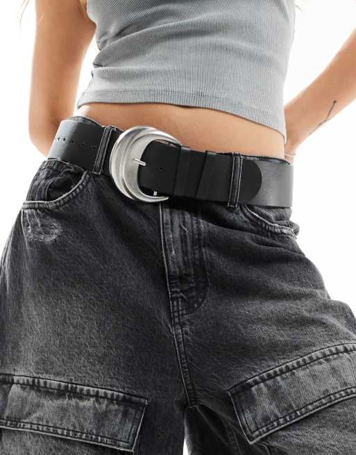 My Accessories - Ceinture large avec boucle oversize - Noir