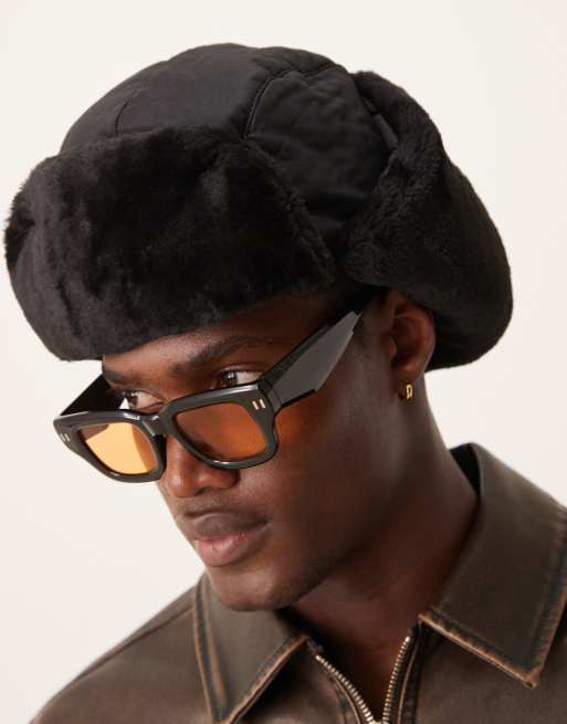 My Accessories - Chapka pour homme avec finition en fausse fourrure - Noir