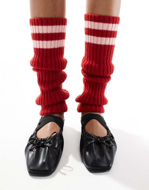 My Accessories - Guêtres en maille côtelée à rayures - Rouge/rose