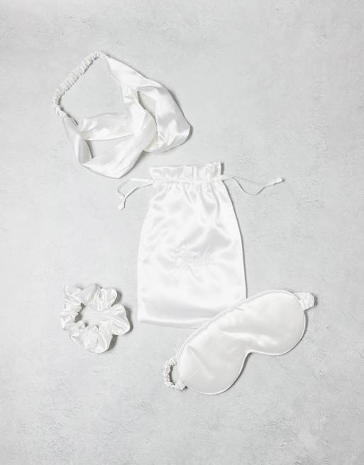 My Accessories - Pochette de mariée avec masque de sommeil, chouchou et bandeau - Blanc