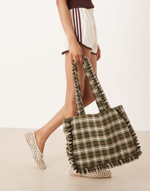 My Accessories - Tote bag volanté à carreaux - Vert olive