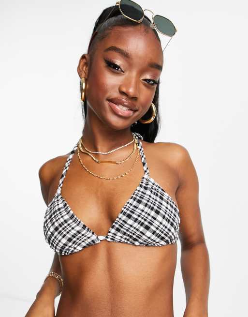 NA-KD - Haut de bikini triangle à carreaux - Noir et blanc