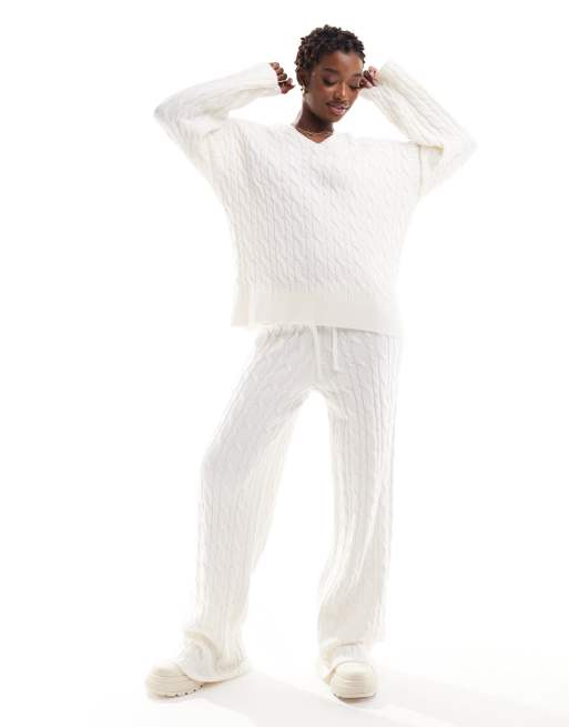 NA-KD - Pantalon d'ensemble droit en maille torsadée - Blanc cassé