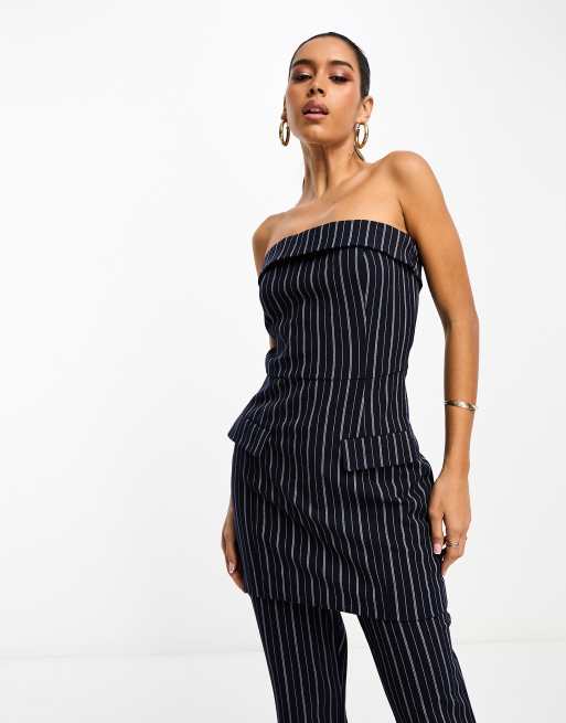 NA-KD x Chloé Schuterman - Corset d'ensemble long à rayures - Bleu marine/blanc