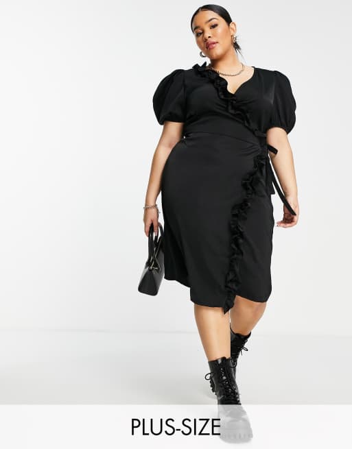 NaaNaa Plus - Robe portefeuille mi-longue en satin à imprimé - Noir