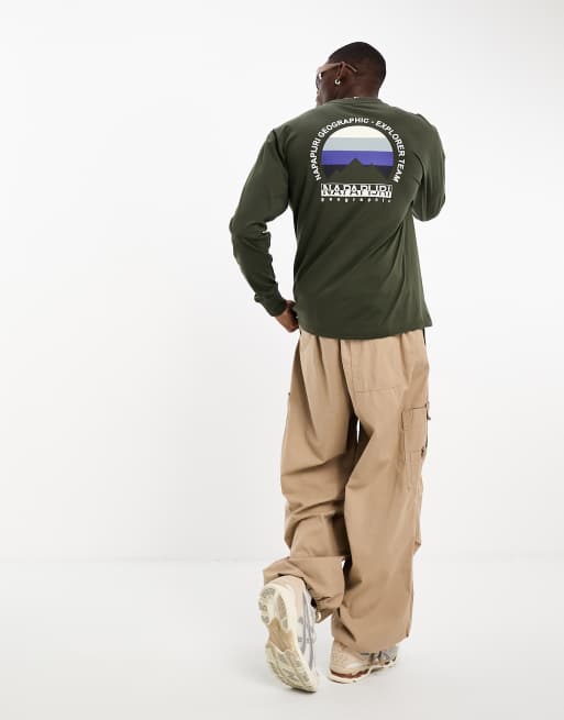 Napapijri - Telemark - T-shirt à manches longues imprimé au dos - Kaki