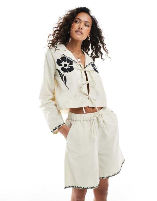 Native Youth - Ensemble en lin avec bords brodés - Taupe